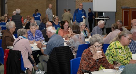 Billeder fra generalforsamlingen i 2021, hvor bestyrelsen havde en lille gave til den afgående formand, i form af den "SJOVE" mand, Ove Kristensen.