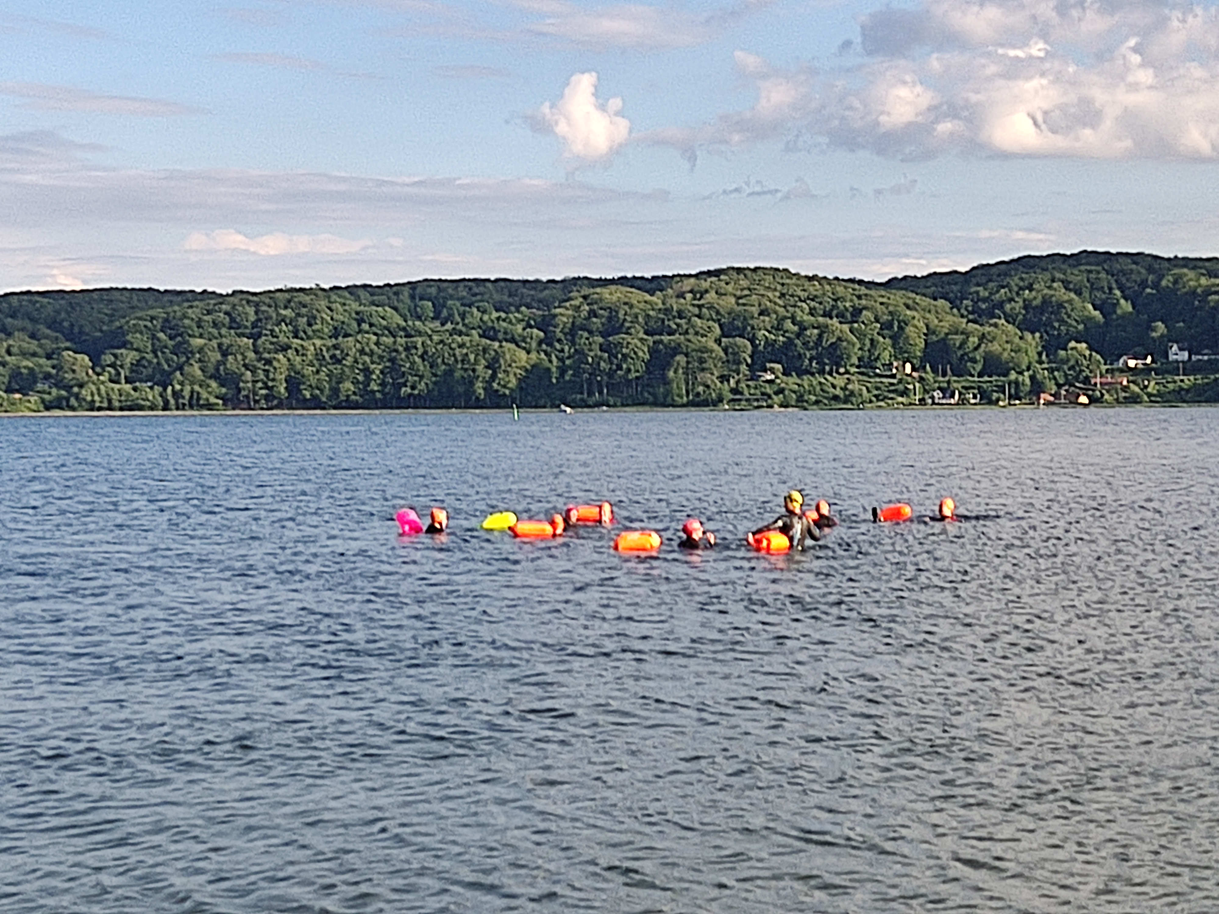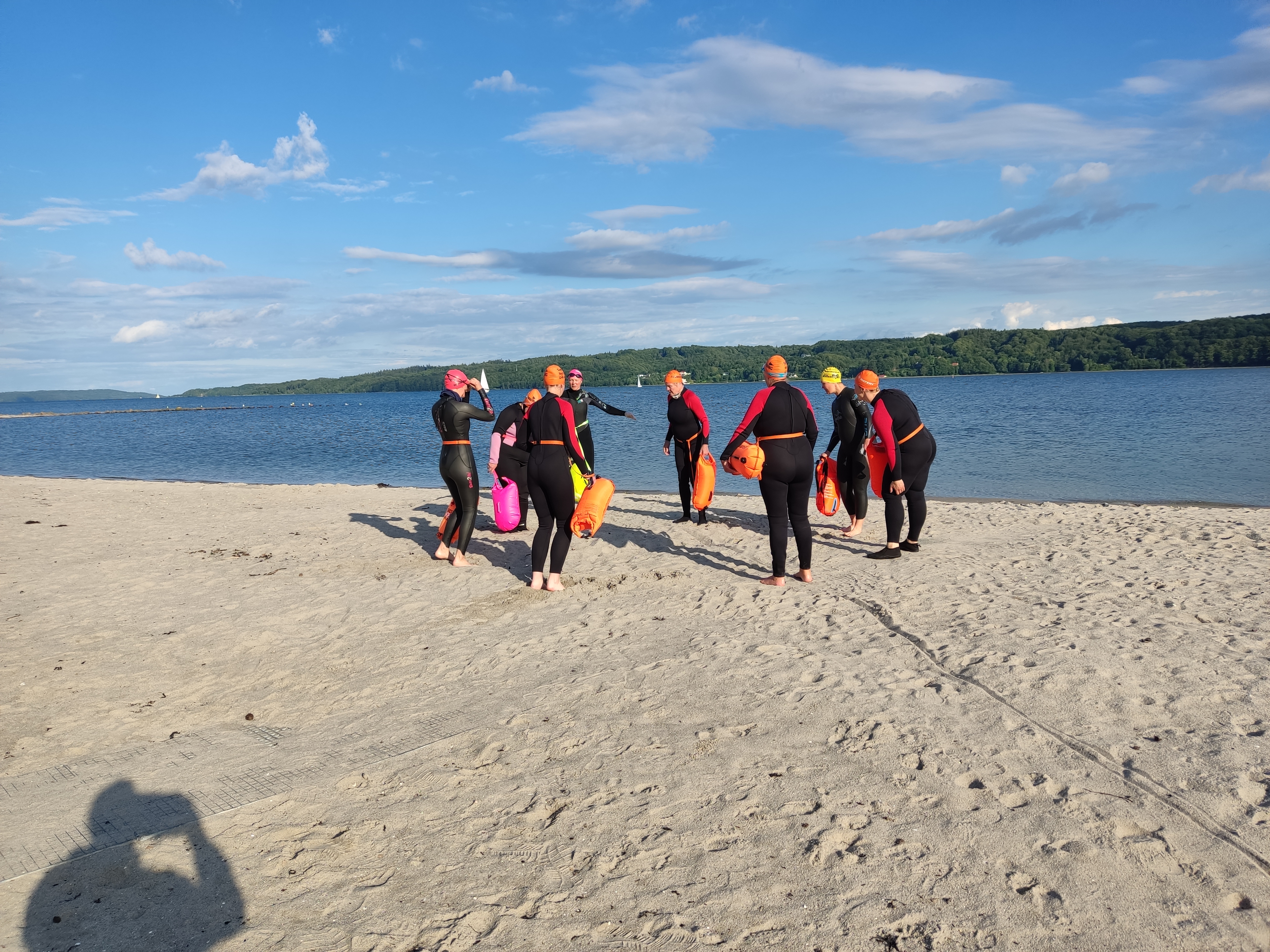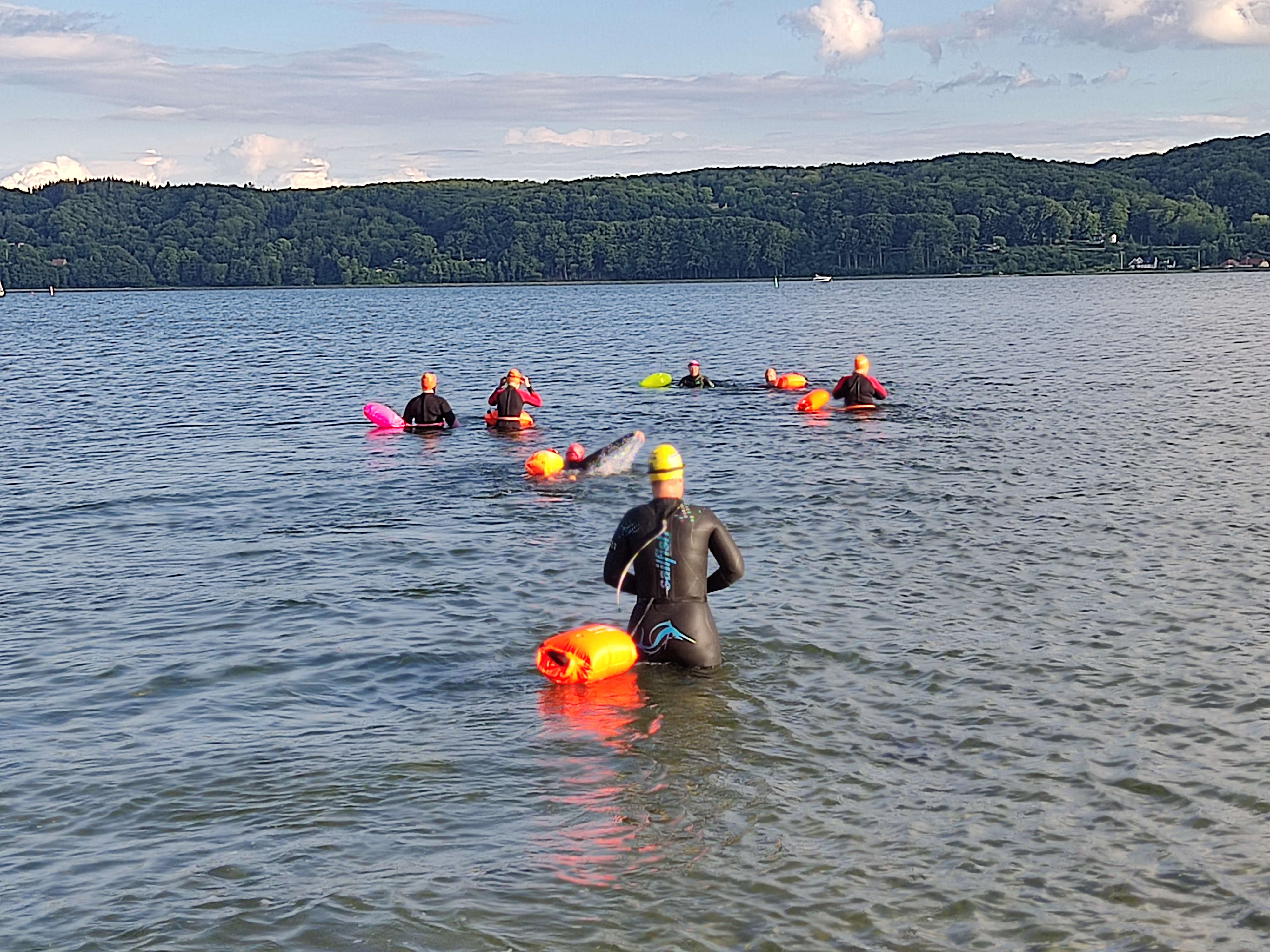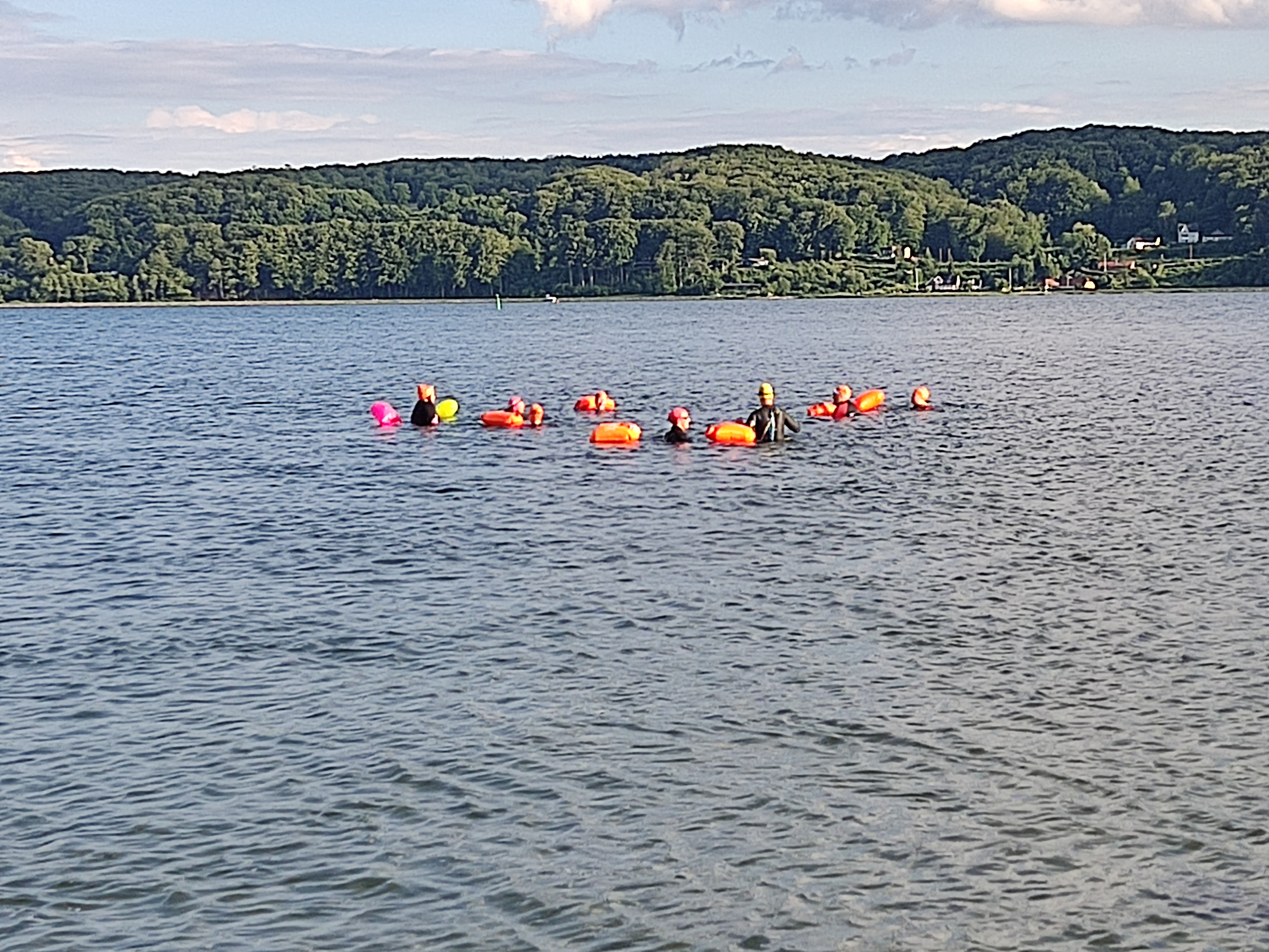 Kig med, når en hel kvindeflok på otte kvinder hoppede i bølgen i Vejle Fjord. Vandet var dejligt, så ruten gik denne mandag aften, ud til Vejle Fjordbroen.
