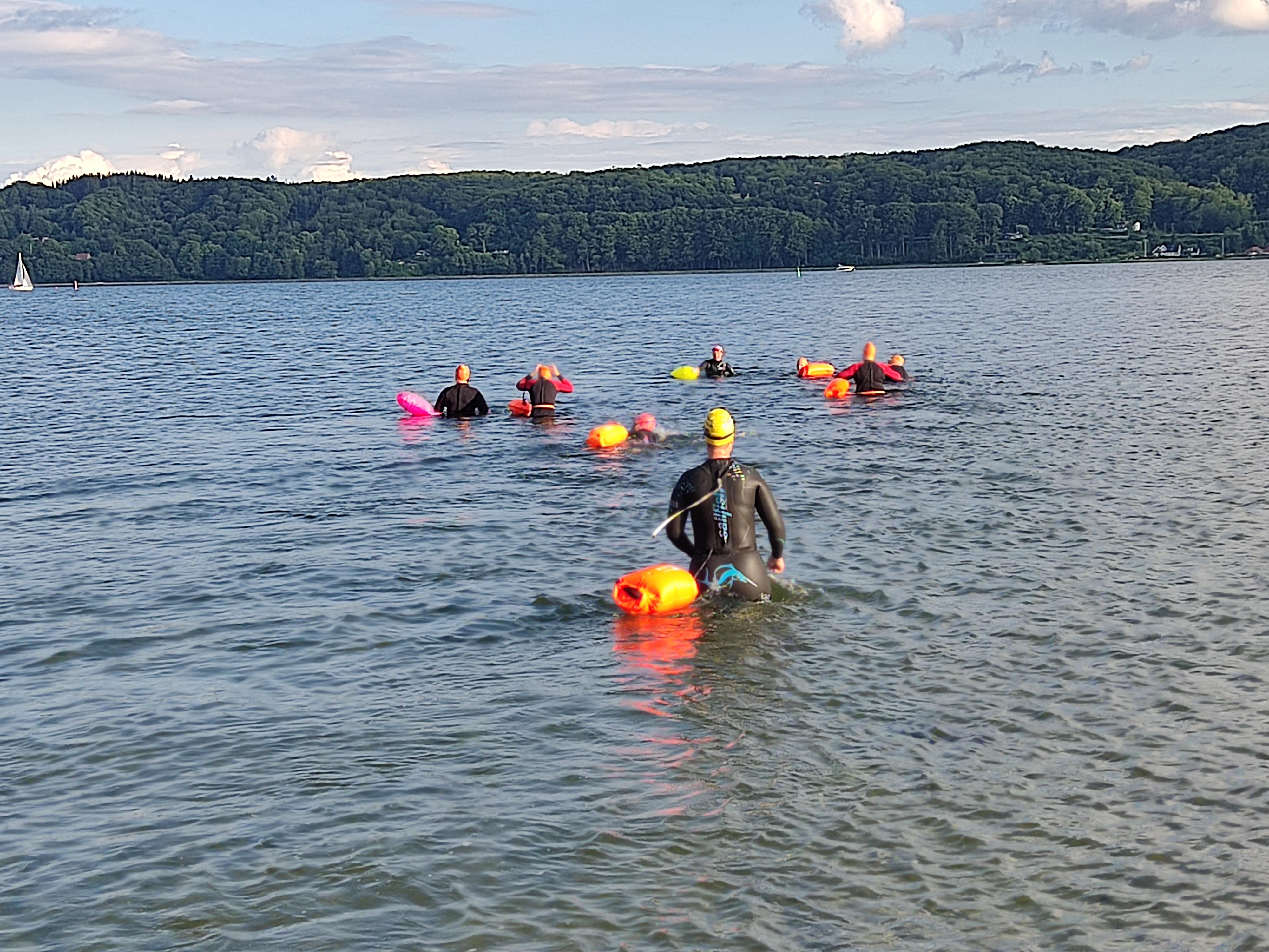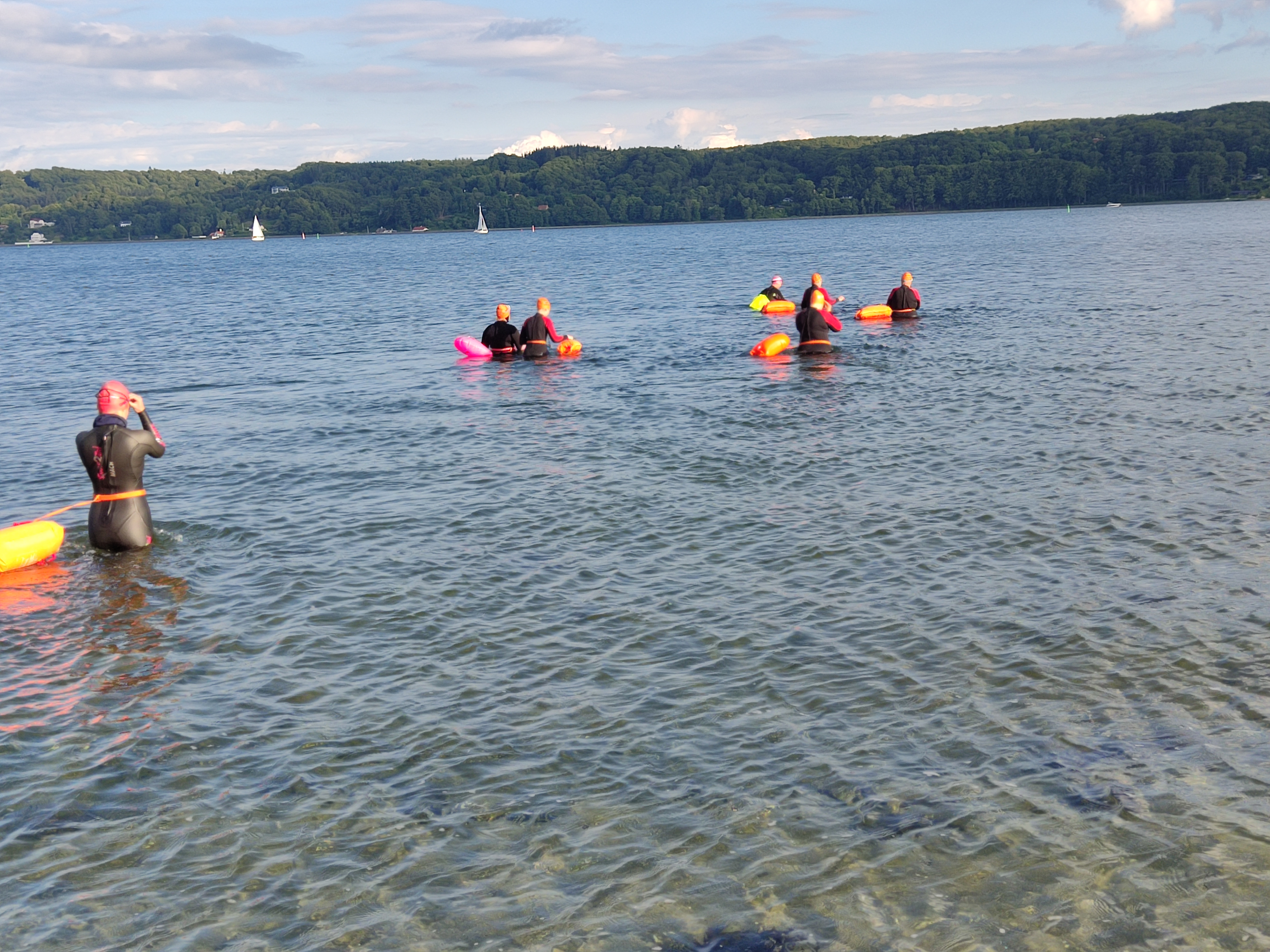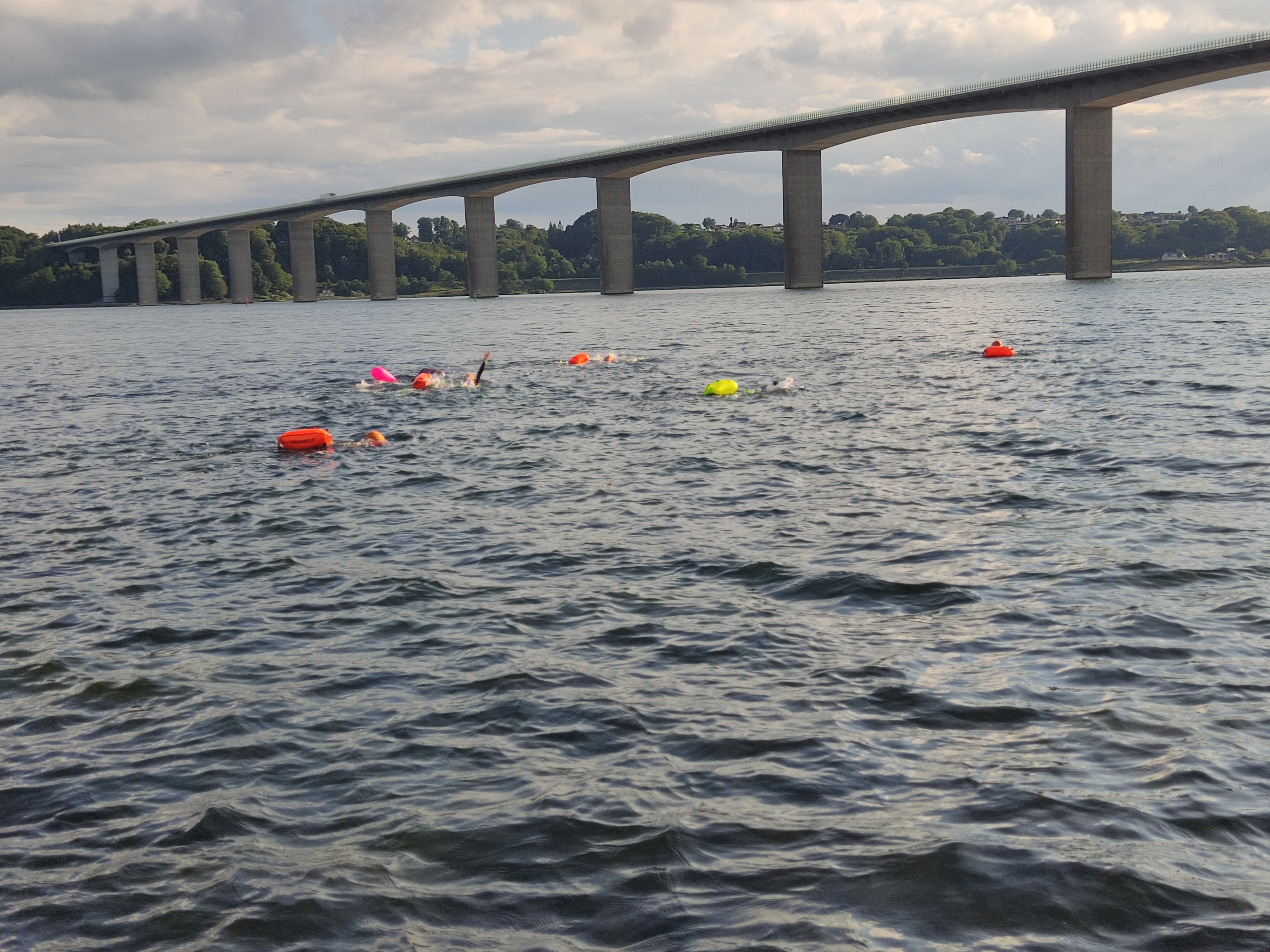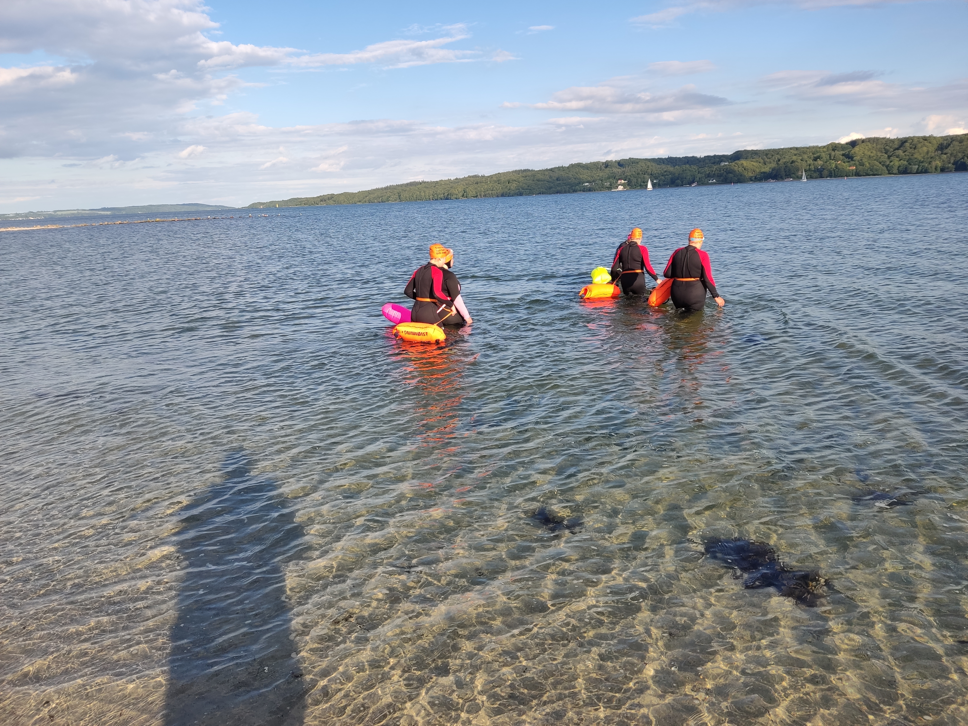 Kig med, når en hel kvindeflok på otte kvinder hoppede i bølgen i Vejle Fjord. Vandet var dejligt, så ruten gik denne mandag aften, ud til Vejle Fjordbroen.