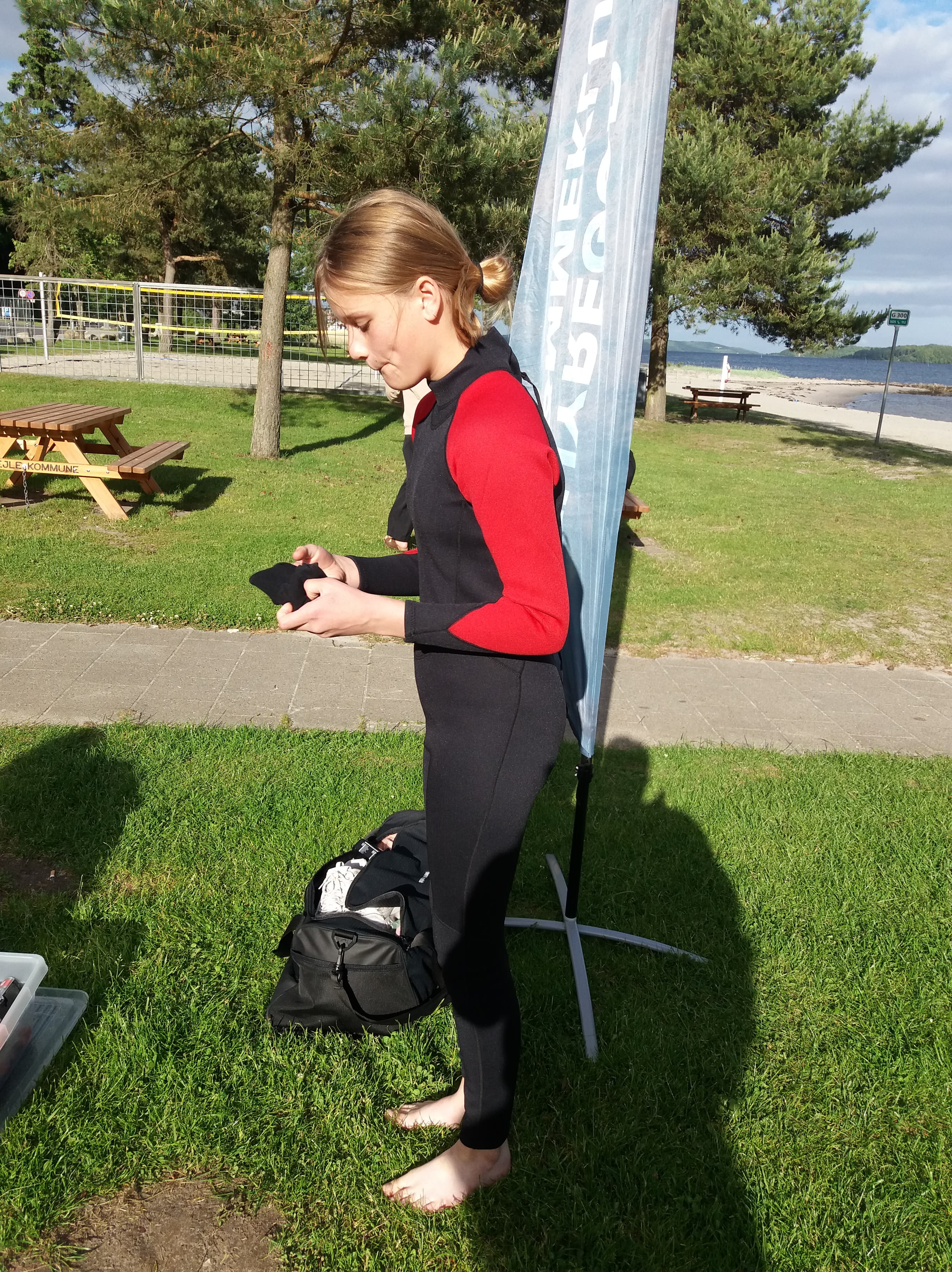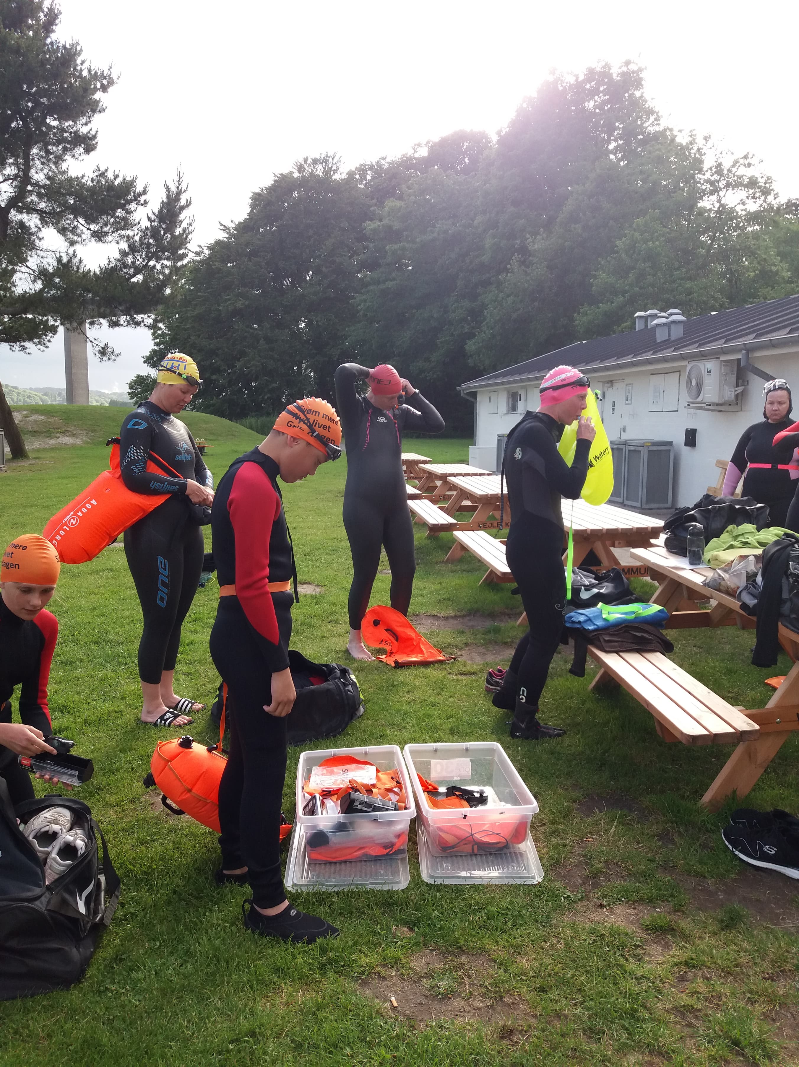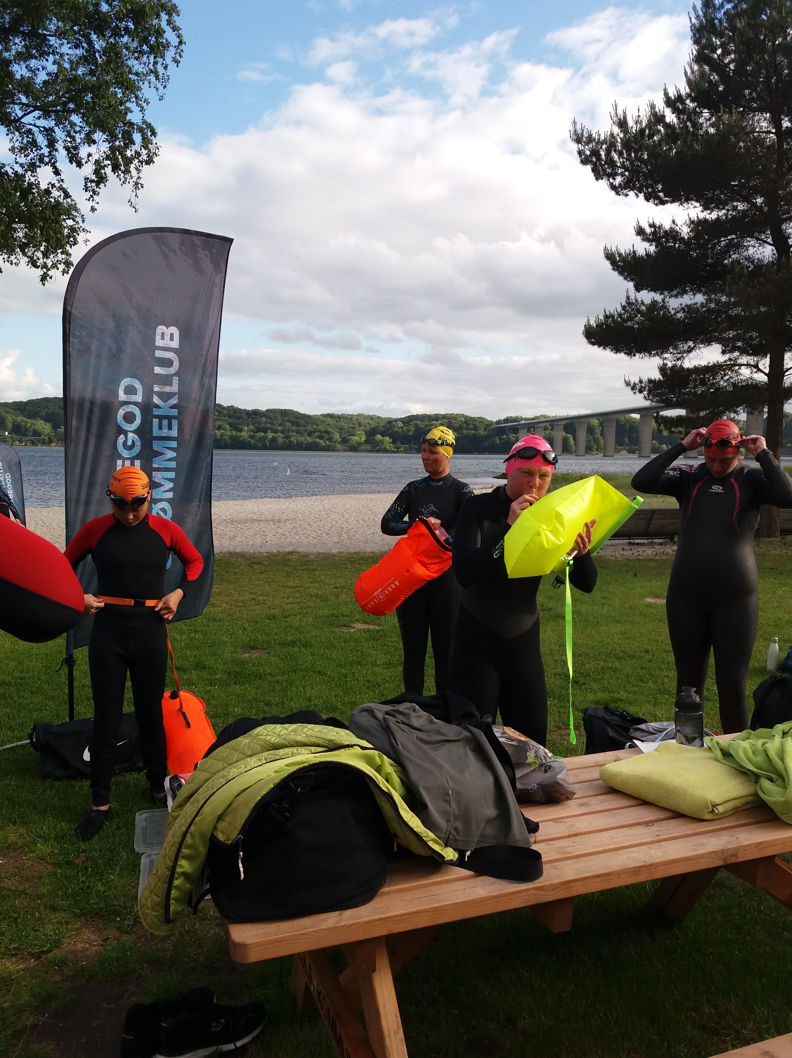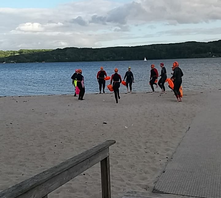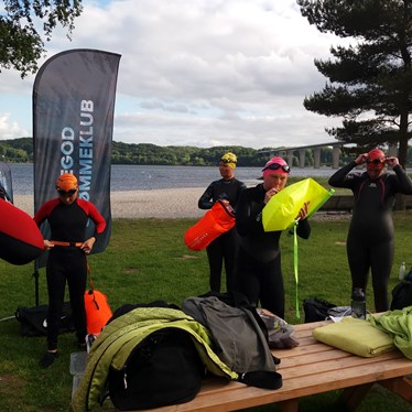 Mandag, den 13. juni var vi en del af det nationale Open Water Week, som arrangeredes af Bevæg Dig For Livet og DGI, hvor man i klubber rundt omkring i landet, kan prøve kræfter med det åbne vand. Omkring 10 seje svømmere kastede sig i bølgen i Vejle Fjord. Vi svømmede ud fra Albuen Strand og svømmede frem og tilbage, så vi rigtig kunne mærke bølgerne og vinden. Det var dejligt, at komme i vandet igen, og selvom solen forsvandt og kom igen, så var det en rigtig god svømmetur.