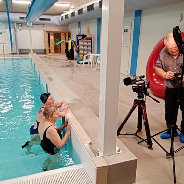 Læseklubben ligger i vandet og svømmer, mens deltagerne har hørertelefoner på, så man kan ligge og lytte, mens man er i vandet. Det er en alternativ form for svømning og sanserne stimuleres i høj grad, når man både skal lytte og være opmærksom på vandets indflydelse. Det er "Bevæg dig for livet", som fik ideen, og i samarbejde med Vejle Bibliotekerne, har vi fået sat gang i et unikt samarbejde på tværs af de tre organisationer. Indtil videre fortsætter holdet, som lige nu har otte deltagere.