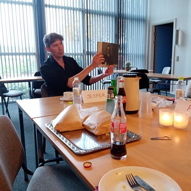 Tirsdag, den 9. november mødtes læseklubben for tredje gang i år til, endnu en omgang vandlæsning og efterfølgende blev bogen diskuteret, sammen med bogens landskendte forfatter, Jesper Wung-Sung. Forfatterens nye bog, som blev udgivet her i 2021, "Kvinde set fra ryggen", handler om Ida og Vilhelm Hammershøi, og er en spændende exofiktiv roman, som fortæller om pigen, der kun ses fra ryggen.