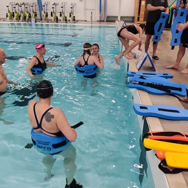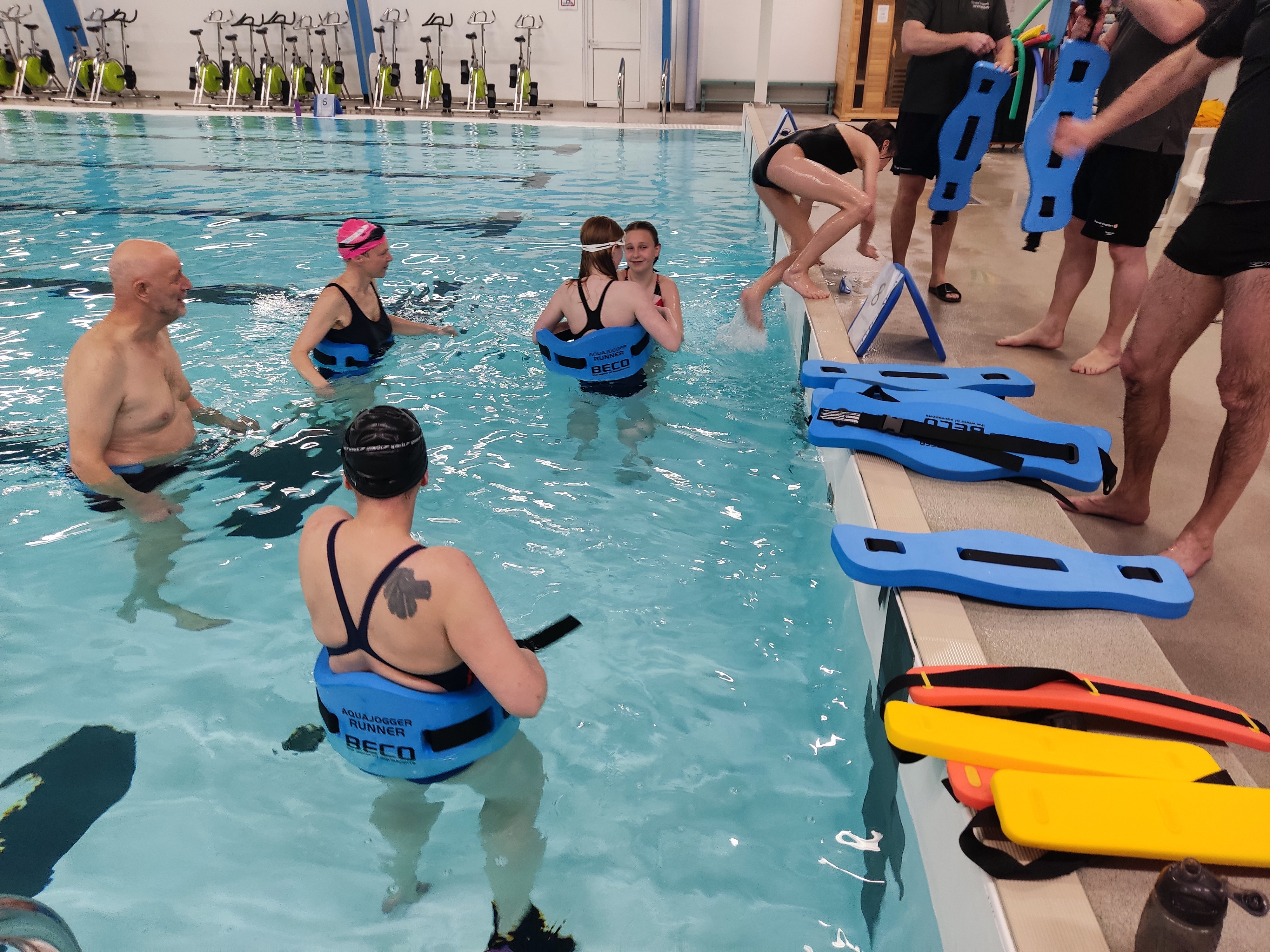 Vi løb, svømmede og ja, cyklede i vand. Alle tre discipliner, blev gennemført på en god time, og så kunne du herefter kalde dig selv for, "tidligere ironman-deltager". Ret sejt, hvis vi skal sige det … Svømmedelen krævede vist ikke det helt store, men da vi skulle til at cykle, så blev det godt! Svømning efterfulgtes af et skarpt cykelprogram, som vi tilrettelagde kun for denne ene gang. Da vi sluttede med løb, iføredes man et mavebælte, så man frit kunne løbe sig gennem vores særligt tilrettelagte bane, samtidig med, at man ikke kunne nå bunden.
